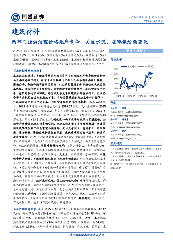 【国盛证券】【202510】建筑材料行业周报:两部门强调治理价格无序竞争,关注水泥、玻璃供给侧变化-18页