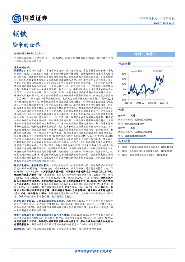 【国盛证券】【202510】钢铁行业周报:纷争的世界-16页
