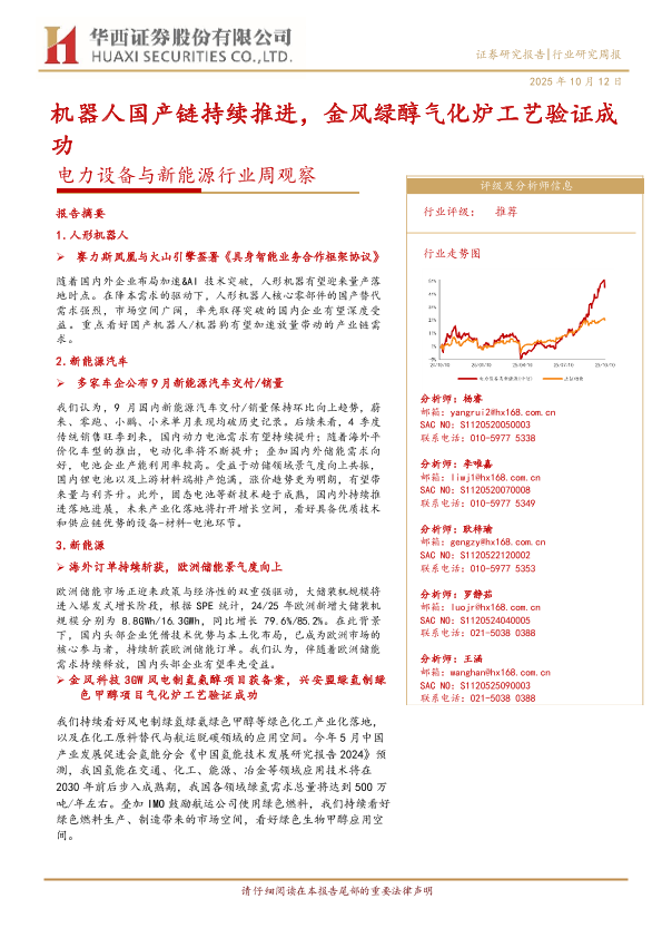 【华西证券】【202510】机器人国产链持续推进,金风绿醇气化炉工艺验证成功-27页