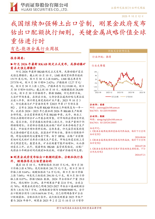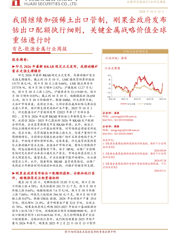 【华西证券】【202510】我国继续加强稀土出口管制,刚果金政府发布钴出口配额执行细则,关键金属战略价值全球重估进行时-27页