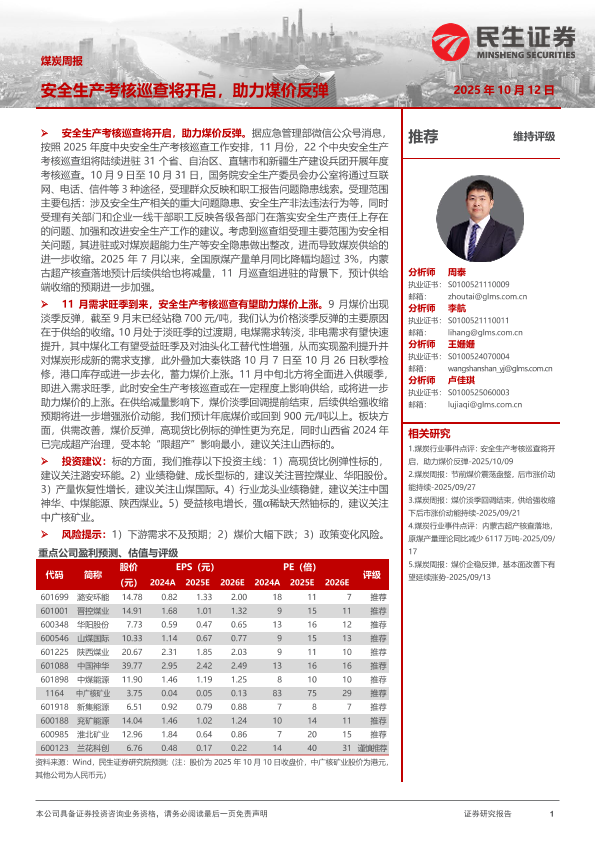 【民生证券】【202510】煤炭周报:安全生产考核巡查将开启,助力煤价反弹-23页