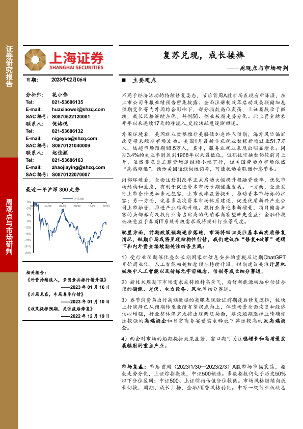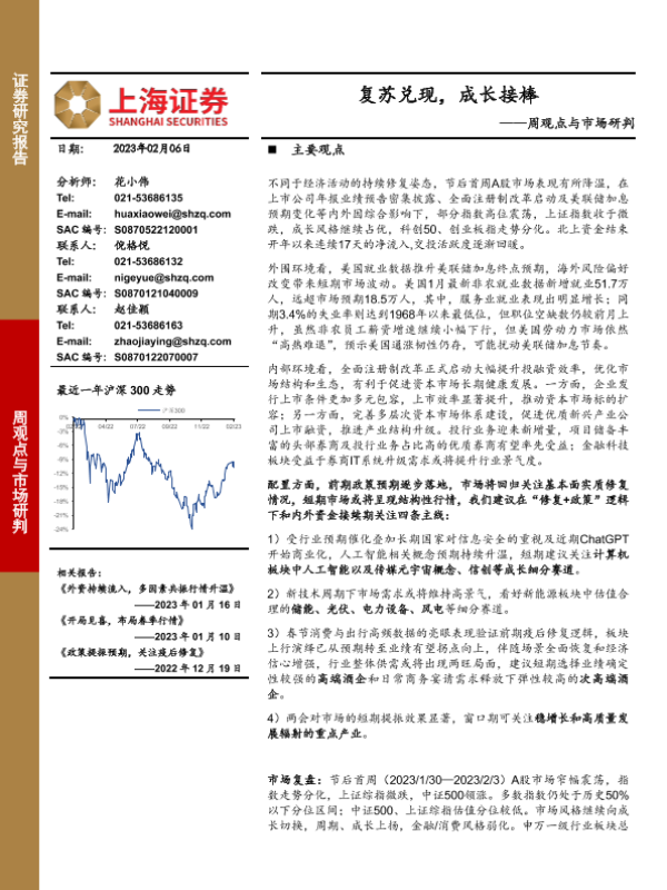 【上海证券】【20230206】周观点与市场研判:复苏兑现,成长接棒-16页