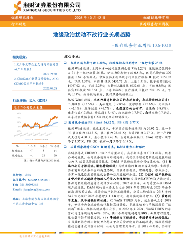 【湘财证券】【202510】地缘政治扰动不改行业长期趋势--医疗服务行业周报 10.6-10.10-10页