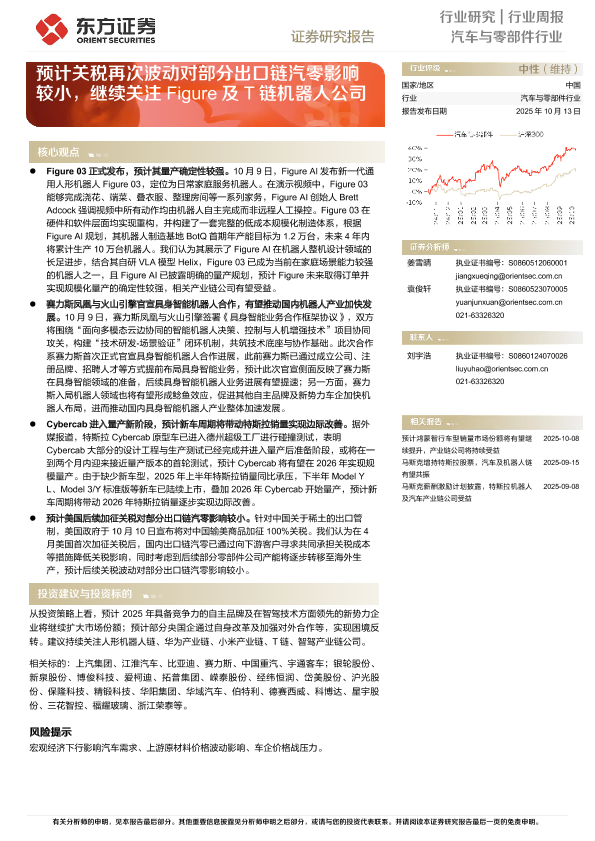 【东方证券】【202510】汽车与零部件行业行业周报——预计关税再次波动对部分出口链汽零影响较小,继续关注Figure及T链机器人公司-15页