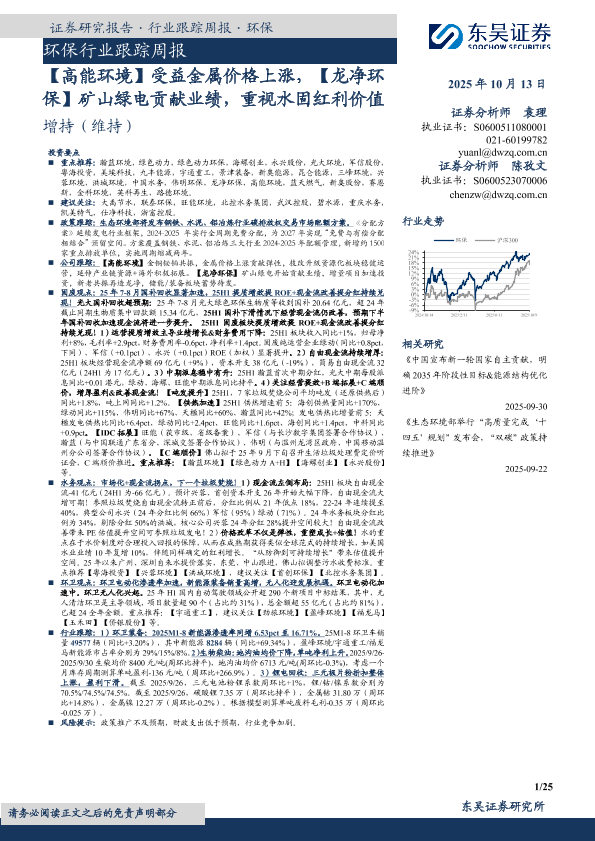 【东吴证券】【202510】环保行业跟踪周报-25页