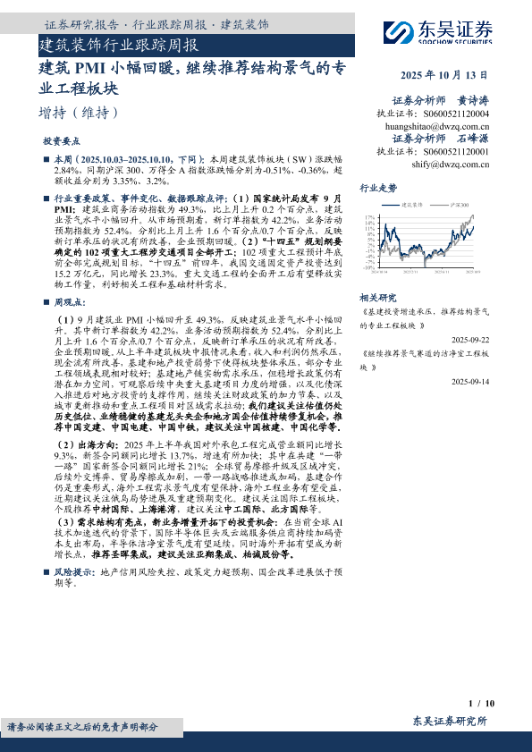 【东吴证券】【202510】建筑PMI小幅回暖,继续推荐结构景气的专业工程板块-10页