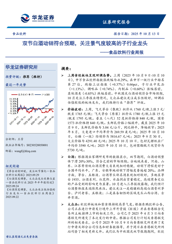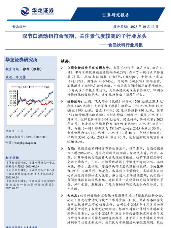 【华龙证券】【202510】双节白酒动销符合预期,关注景气度较高的子行业龙头-10页
