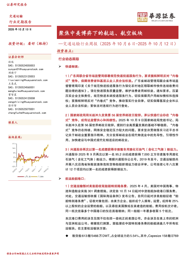 【华源证券】【202510】聚焦中美博弈下的航运、航空板块-17页
