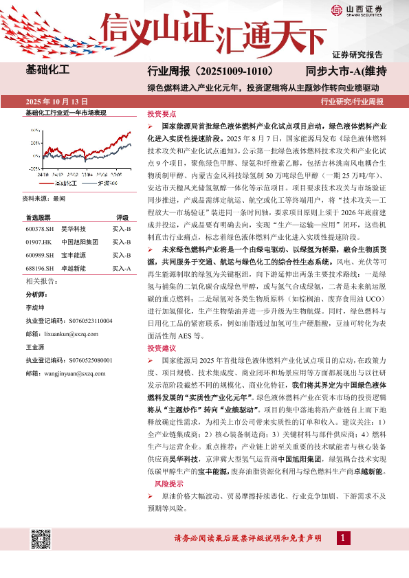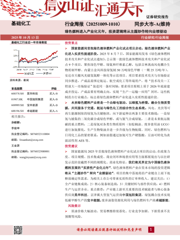 【山西证券】【202510】基础化工行业周报(20251009-1010)同步大市-A(维持)绿色燃料进入产业化元年,投资逻辑将从主题炒作转向业绩驱动-10页