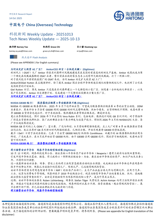 【海通国际】【202510】中国电子 China(Overseas) Technology 科技新闻 Weekly Update- 20251013-13页