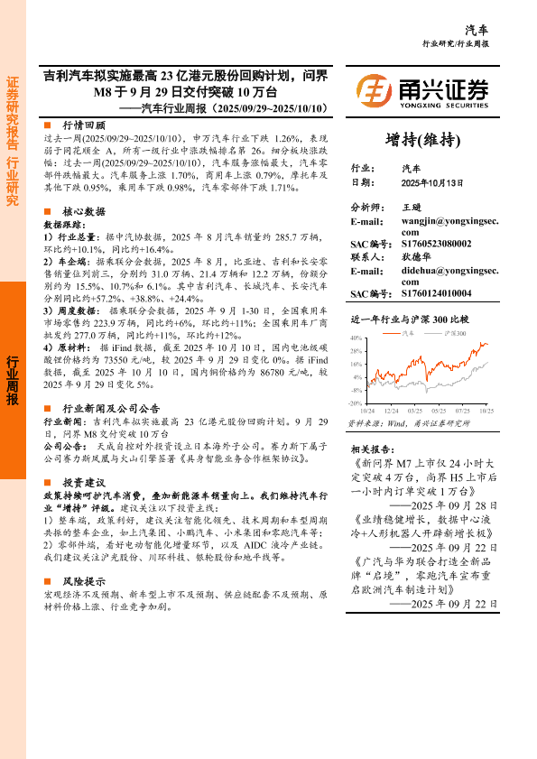 【甬兴证券】【202510】汽车行业周报(2025/09/29~2025/10/10)-12页