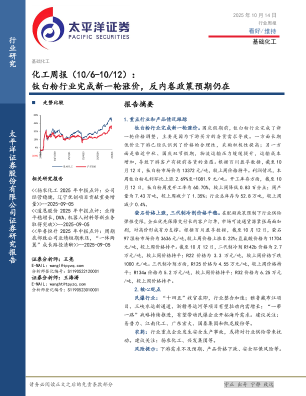 【太平洋证券】【202510】钛白粉行业完成新一轮涨价,反内卷政策预期仍在-33页