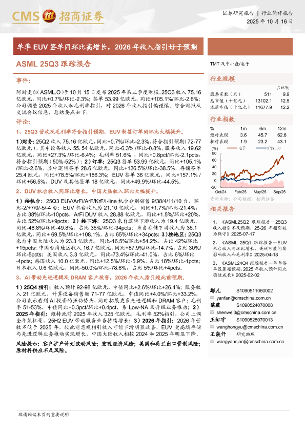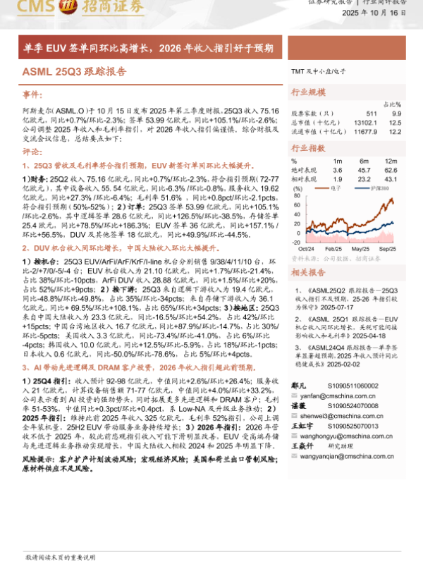 【海通证券】【202510】ASML 25Q3跟踪报告-单季EUV签单同环比高增长,2026年收入指引好于预期-12页