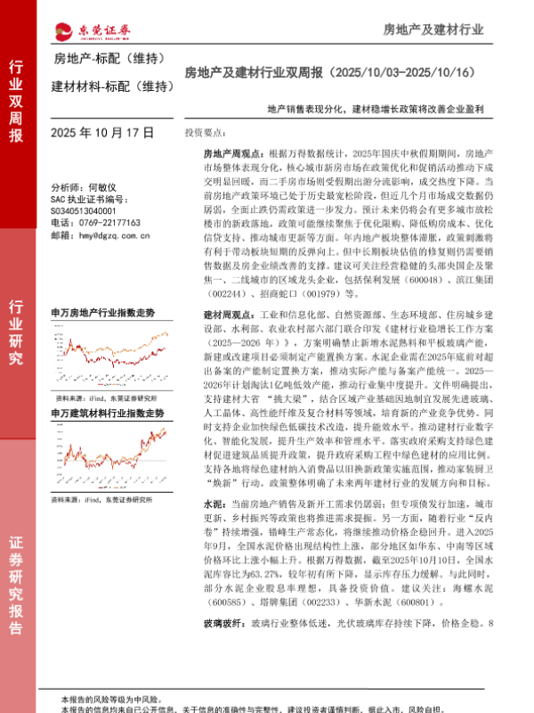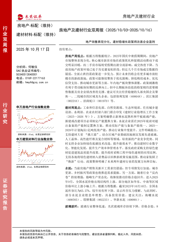 【东莞证券】【202510】房地产及建材行业双周报:地产销售表现分化,建材稳增长政策将改善企业盈利-15页