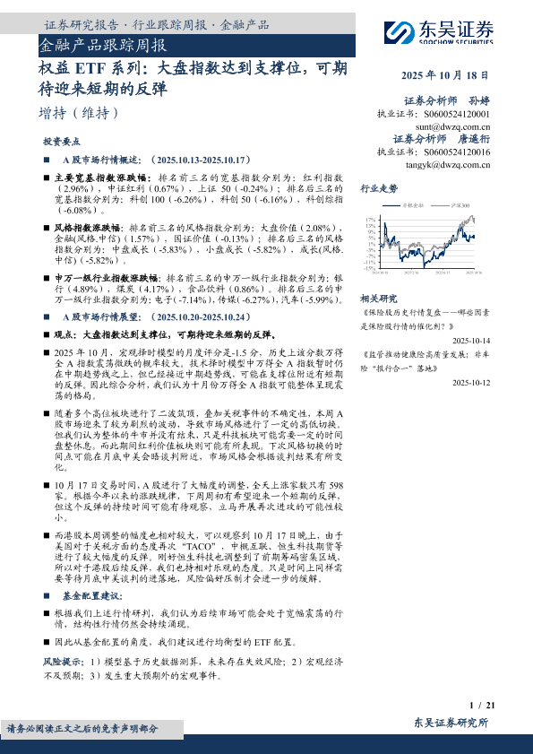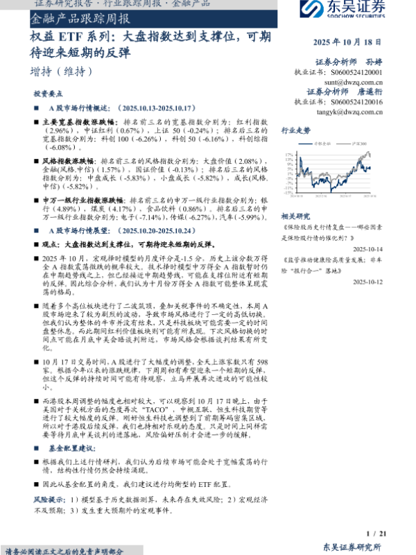 【东吴证券】【202510】权益 ETF系列:大盘指数达到支撑位,可期待迎来短期的反弹-21页