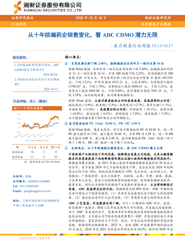 【湘财证券】【202510】从十年院端药企销售变化,看 ADC CDMO潜力无限-12页