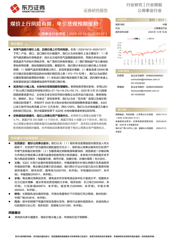 【东方证券】【202510】公用事业行业 周报 ——煤价上行风险有限,电价悲观预期缓和-12页
