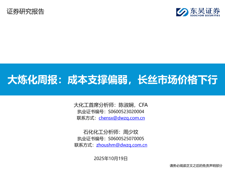 【东吴证券】【202510】大炼化周报:成本支撑偏弱,长丝市场价格下行-34页