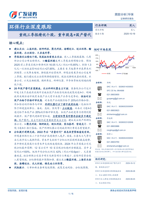 【广发证券】【202510】环保行业深度跟踪:重视三季报绩优个股,重申股息+国产替代-15页