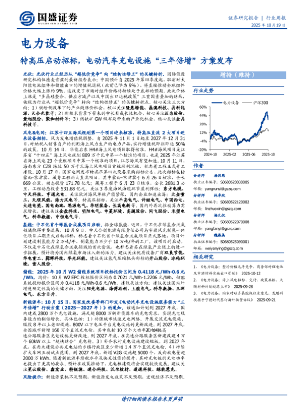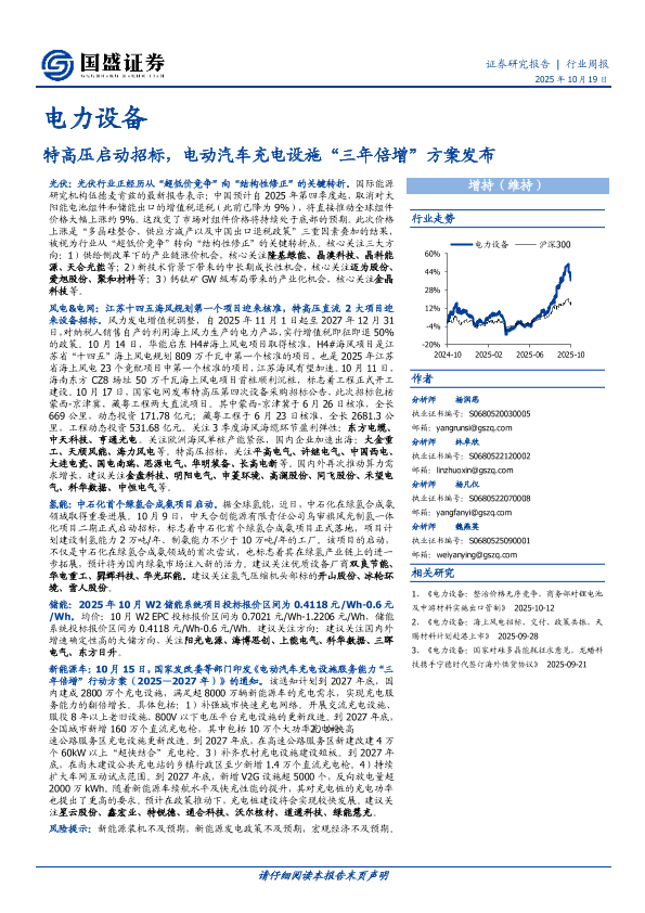 【国盛证券】【202510】电力设备:特高压启动招标,电动汽车充电设施“三年倍增”方案发布-14页