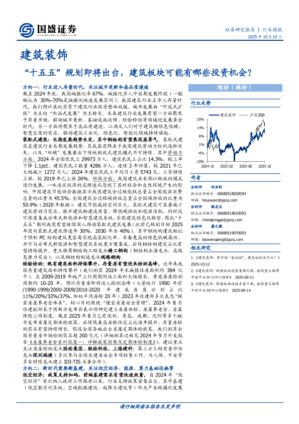 【国盛证券】【2025】“十五五”规划即将出台,建筑板块可能有哪些投资机会?-13页