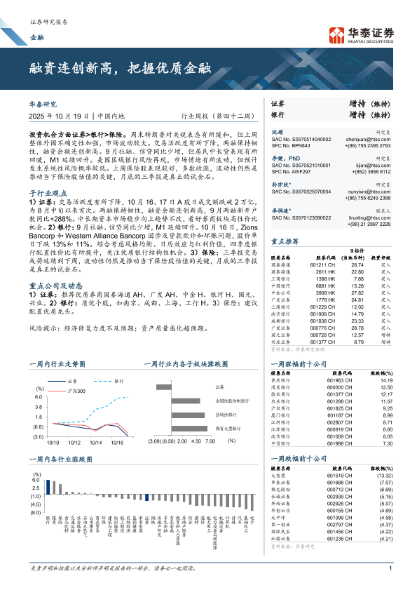 【华泰证券】【202510】2025年10月19日 中国内地 行业周报(第四十二周):融资连创新高,把握优质金融-24页