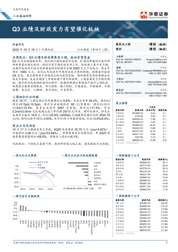 【华泰证券】【202510】2025年10月19日-华泰证券-工业 基础材料行业周报(第四十二周):Q3业绩及财政发力有望催化板块-16页