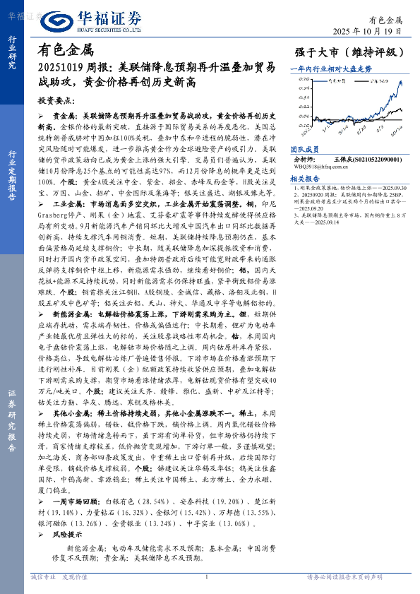 【华福证券】【202510】20251019周报:美联储降息预期再升温叠加贸易战助攻,黄金价格再创历史新高-14页