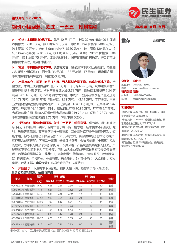 【民生证券】【202510】钢铁周报 20251019-20页