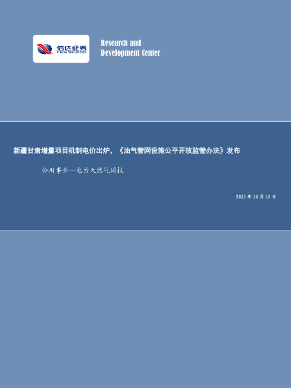 【信达证券股份有限公司 CINDA SECURITIES CO.,LTD】【202510】新疆甘肃增量项目机制电价出炉,《油气管网设施公平开放监管办法》发布-22页