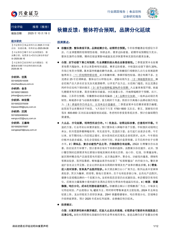 【兴业证券】【202510】食品饮料行业 2025年中报总结:加速出清,布局长远-2025.09.08-12页