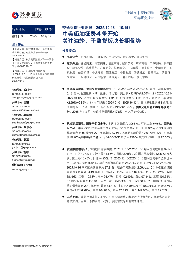 【兴业证券】【202510】交通运输行业周报:中美船舶征费斗争开始,关注油轮、干散货板块长期优势-18页