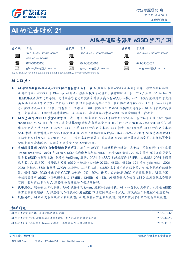 【广发证券】【202510】AI的进击时刻 21 AI&存储服务器用 eSSD空间广阔-13页