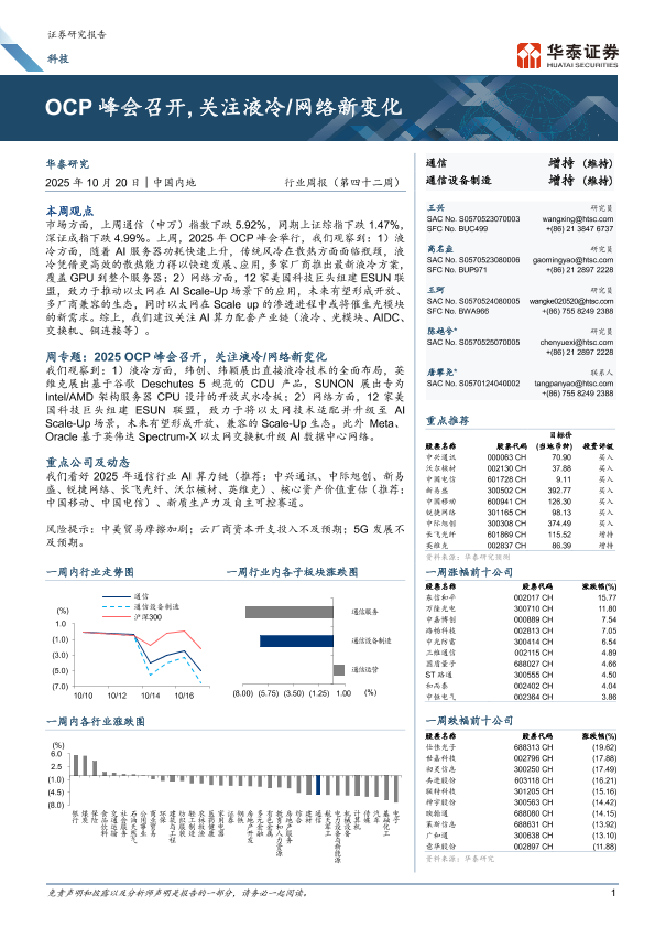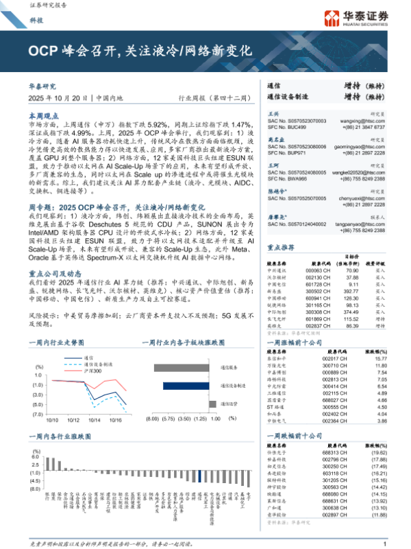 【华泰证券】【202510】科技行业周报(第四十二周):OCP峰会召开,关注液冷/网络新变化-14页