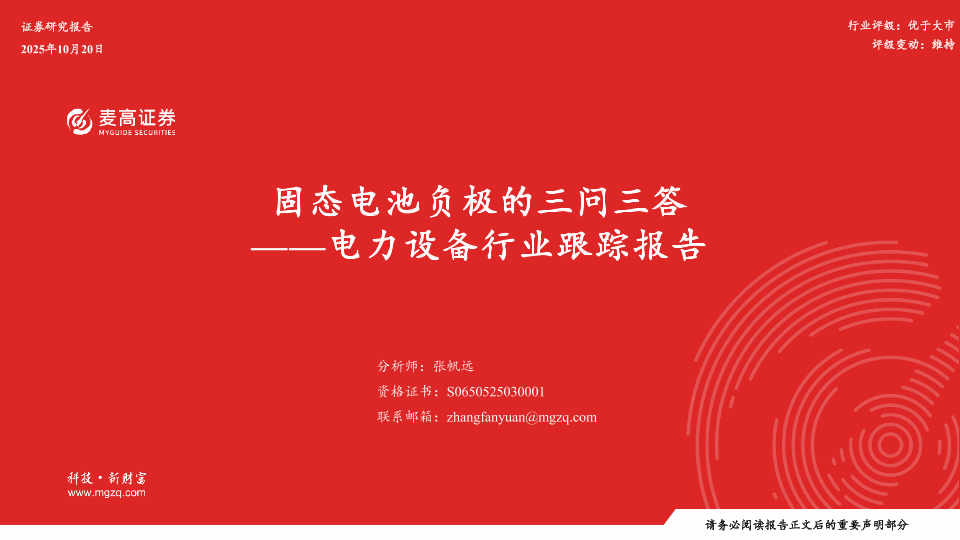 【麦高证券】【202510】固态电池负极的三问三答 ——电力设备行业跟踪报告-19页
