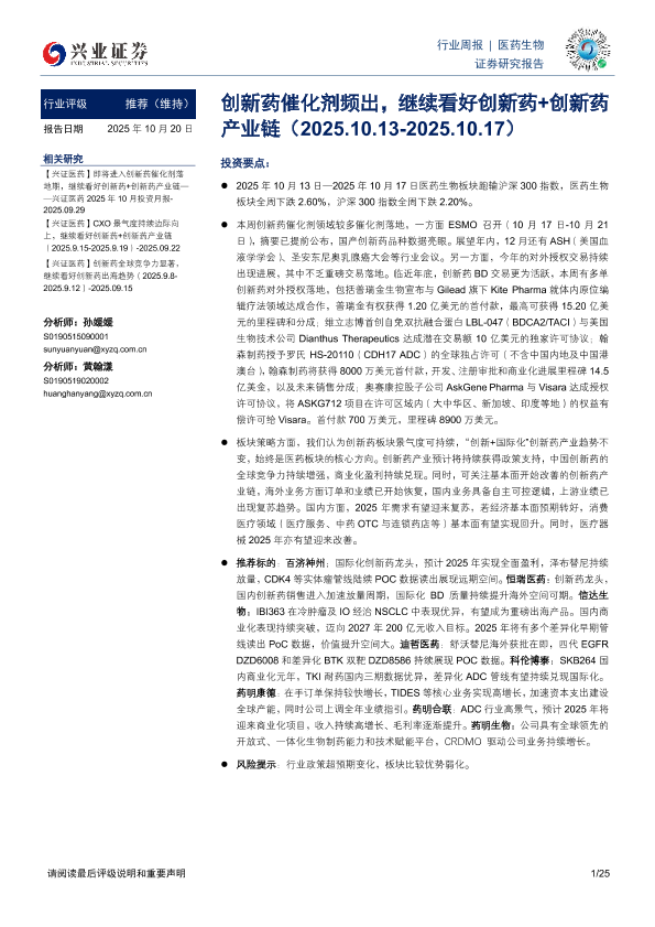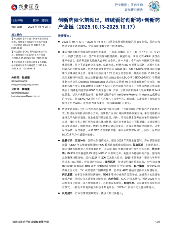生物医药 海外市场 创新药 CXO 行业分析