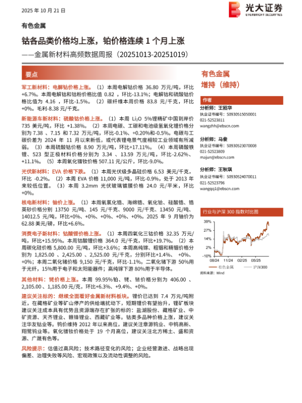 【光大证券】【202510】钴各品类价格均上涨,铂价格连续1个月上涨——金属新材料高频数据周报(20251013-20251019)-24页