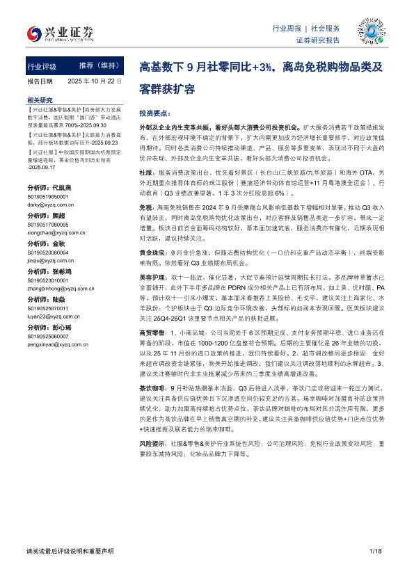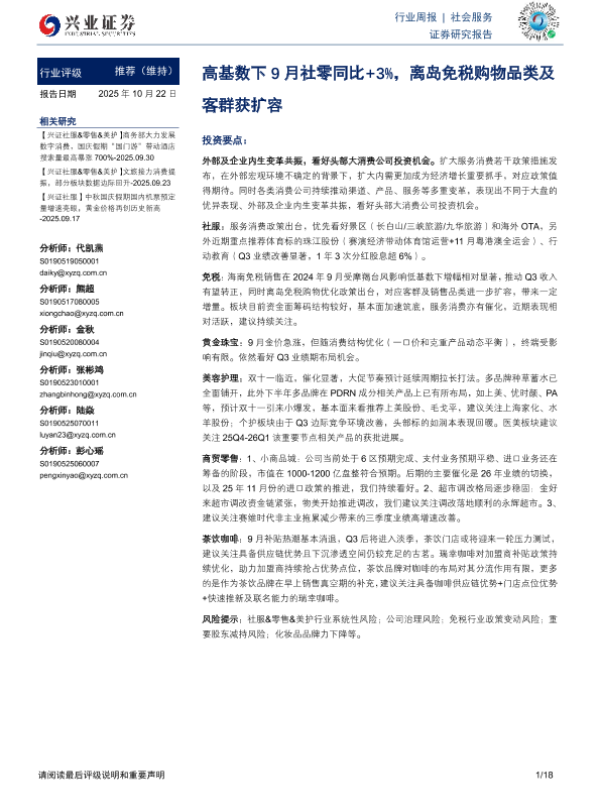 【兴业证券】【202510】行业周报|社会服务-18页