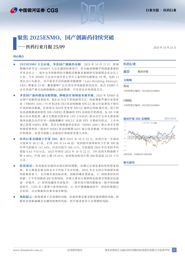 【银河证券】【202510】聚焦2025ESMO,国产创新药持续突破——医药行业月报 25/09-13页