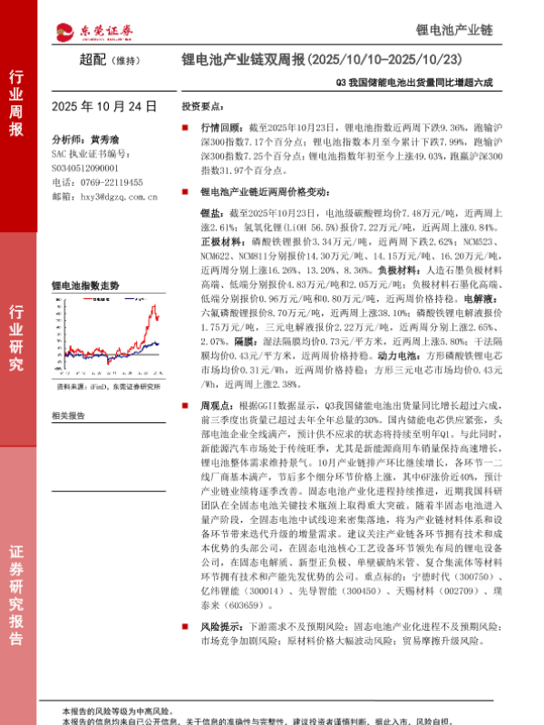【东莞证券】【202510】超配(维持)锂电池产业链双周报(2025/10/10-2025/10/23)-14页
