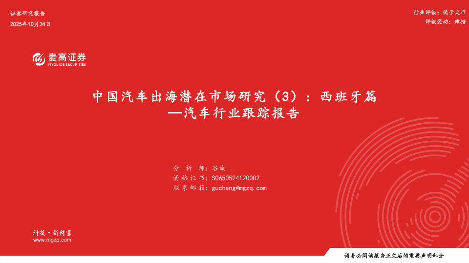 【麦高证券】【202510】中国汽车出海潜在市场研究(3):西班牙篇-23页
