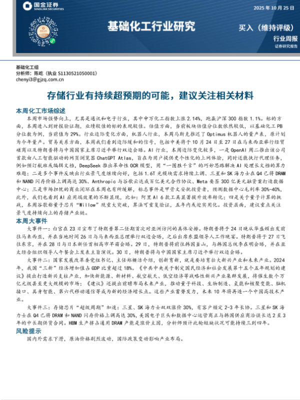 【国金证券】【202310】基础化工行业周报:存储行业有持续超预期的可能,建议关注相关材料-23页