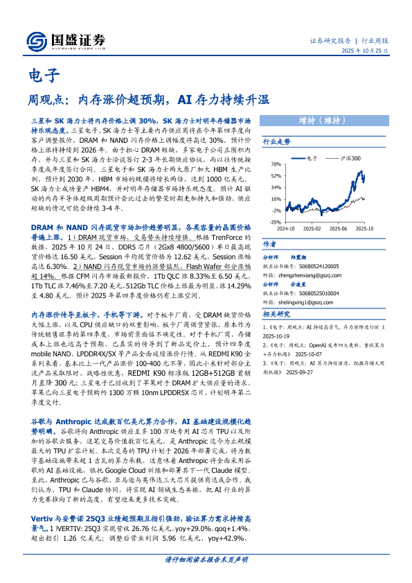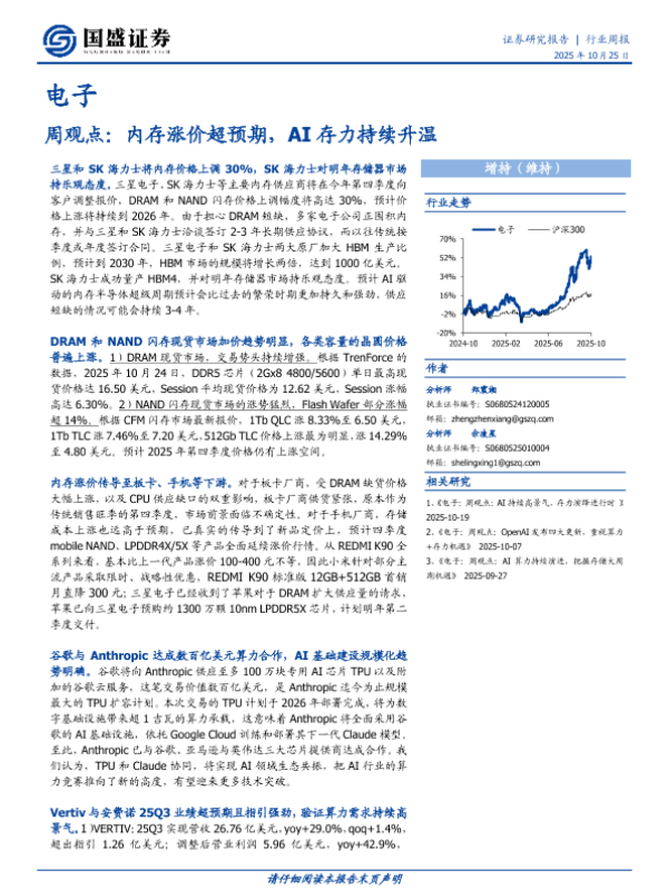 【国盛证券】【202510】电子周观点:内存涨价超预期,AI存力持续升温-19页
