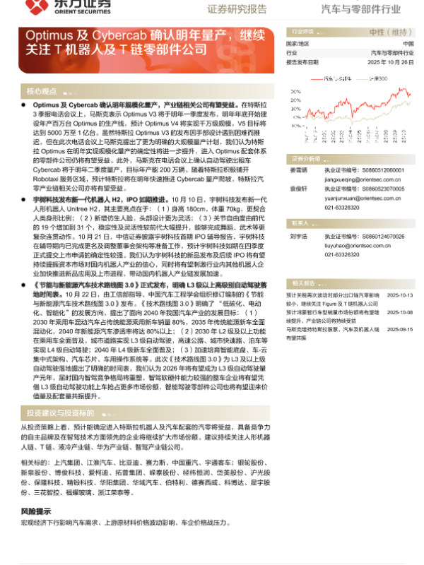 【东方证券】【202510】Optimus及Cybercab确认明年量产,继续关注T机器人及T链零部件公司-17页