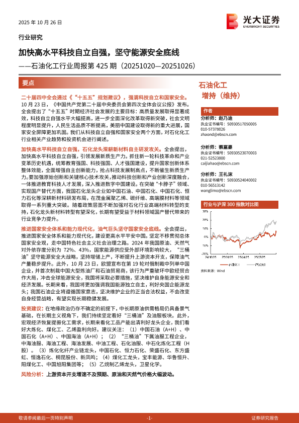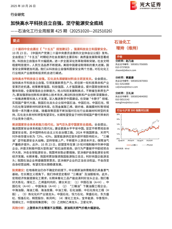 投资机会 科技自立 新材料 石油化工 能源安全