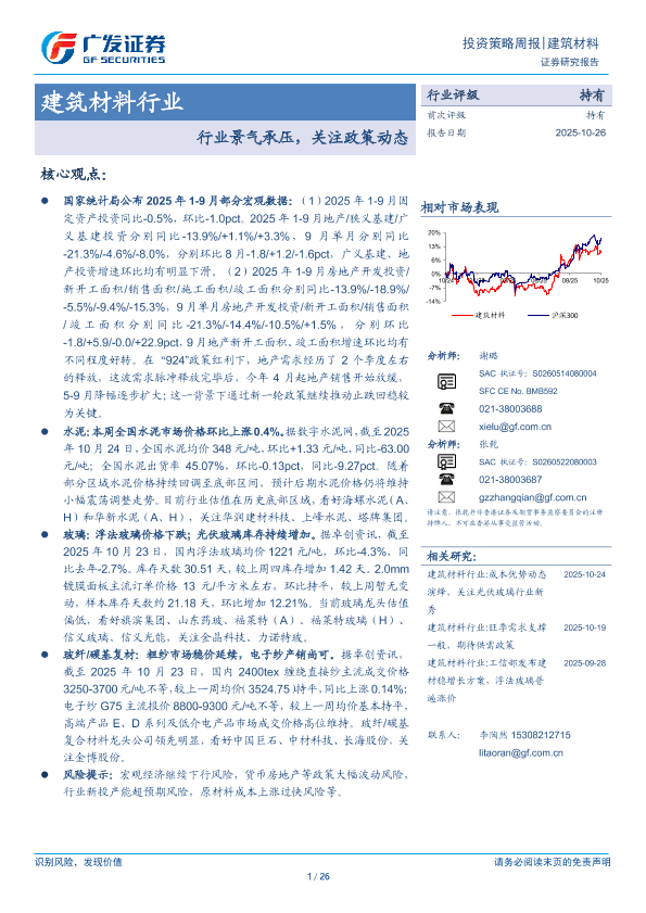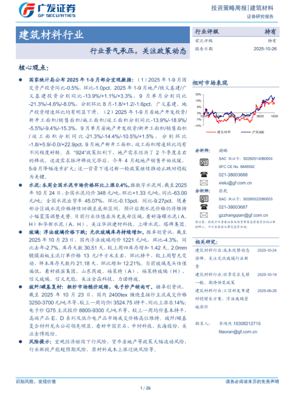 【广发证券】【202510】20251026-广发证券-建筑材料行业投资策略周报:行业景气承压,关注政策动态.pdf-26页