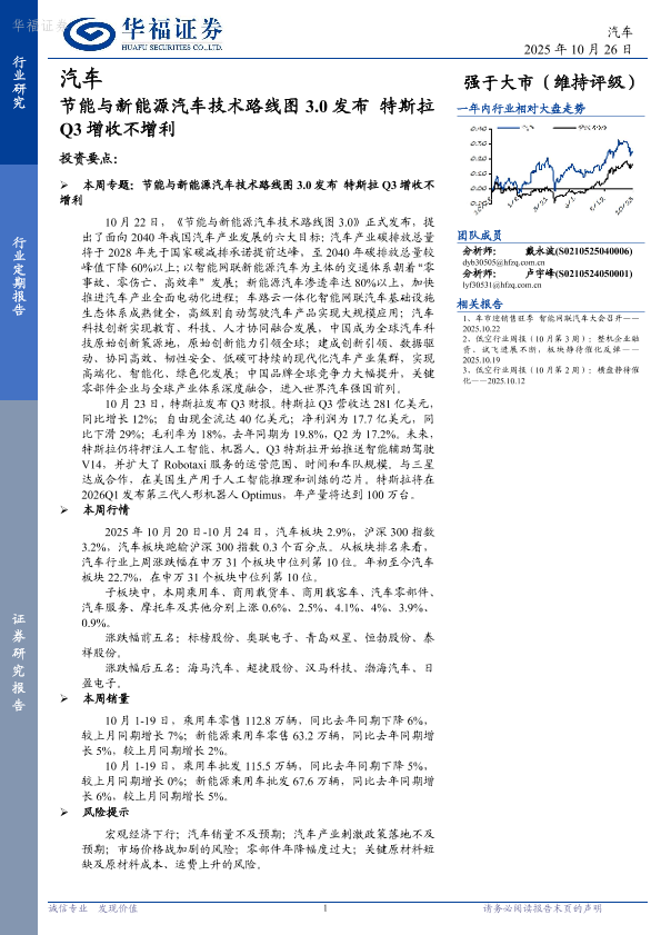 【华福证券】【202510】节能与新能源汽车技术路线图3.0发布 特斯拉Q3增收不增利-12页