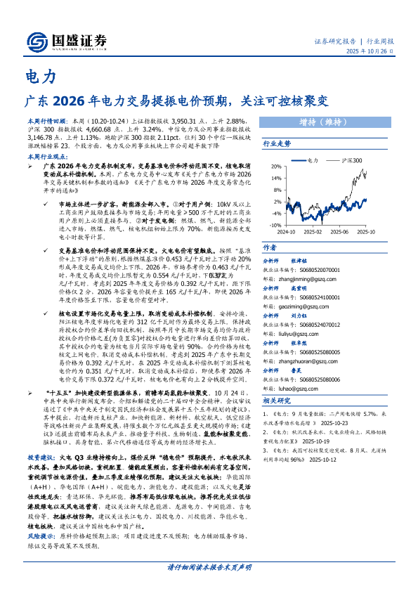【国盛证券】【202510】广东2026年电力交易提振电价预期,关注可控核聚变-15页