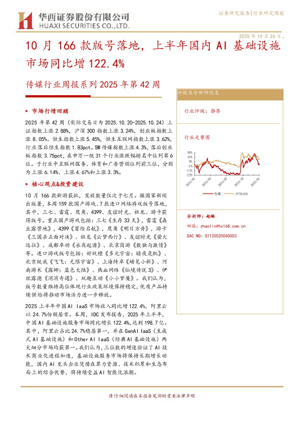 【华西证券】【202510】20251026-华西证券-传媒行业周报系列2025年第42周:10月166款版号落地,上半年国内AI基础设施市场同比增122.4%-14页