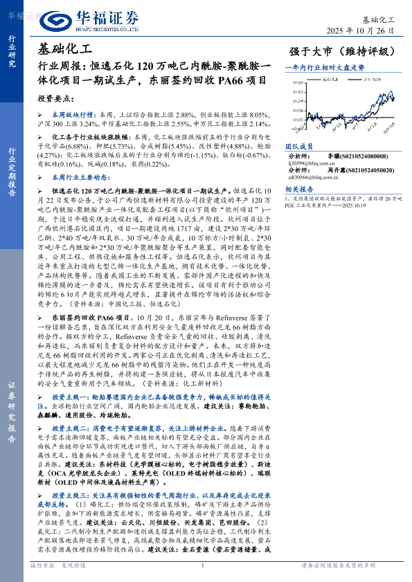 【华福证券】【202510】基础化工行业周报:恒逸石化120万吨己内酰胺-聚酰胺一体化项目一期试生产,东丽签约回收PA66项目-21页
